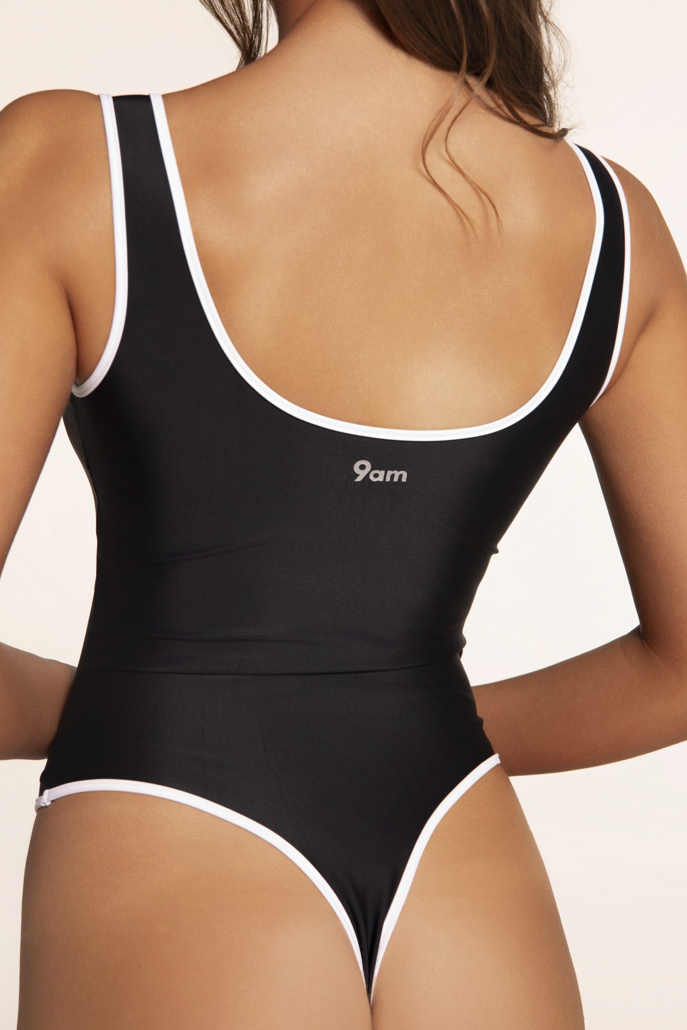 A sleek one-piece crafted in Jet Black with clean ivory piping. The Contour Zip Bodysuit sculpts and smooths with a compressive, four-way stretch fabric, moving from studio to street with ease.